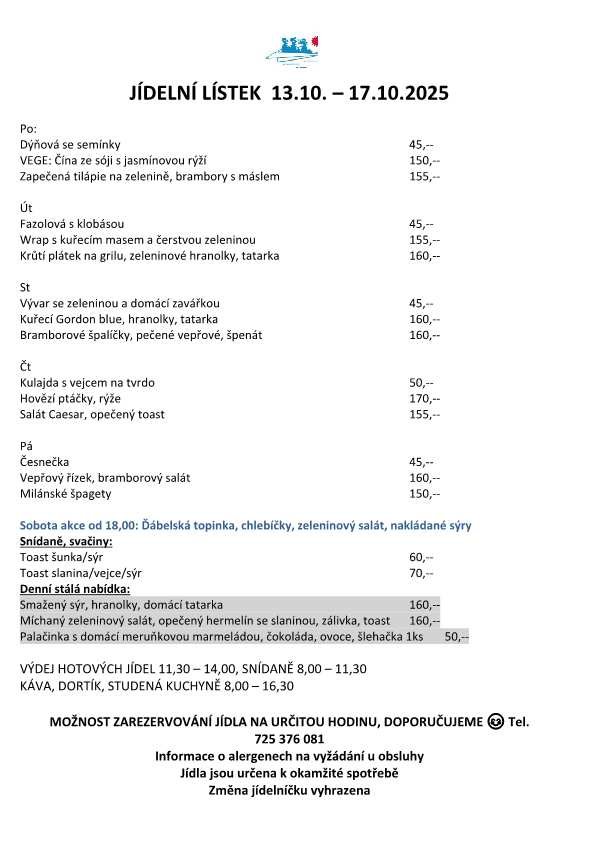 Bude stálá nabídka doplňována o každodenní hotovky s polévkou.
